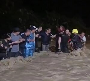 En Lejanías, varias familias fueron rescatadas tras quedar atrapadas por las inundaciones. Con una cadena humana conformada por la comunidad, el Cuerpo de Bomberos del municipio y uniformados de la Policía Departamental del Meta, lograron cruzar las fuertes corrientes del caño Urichare, que se desbordó debido a las intensas lluvias.